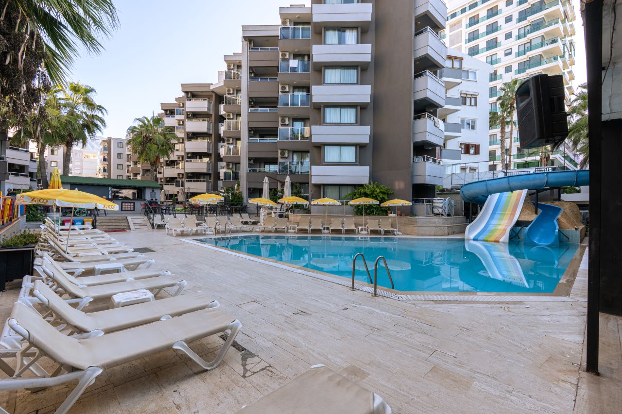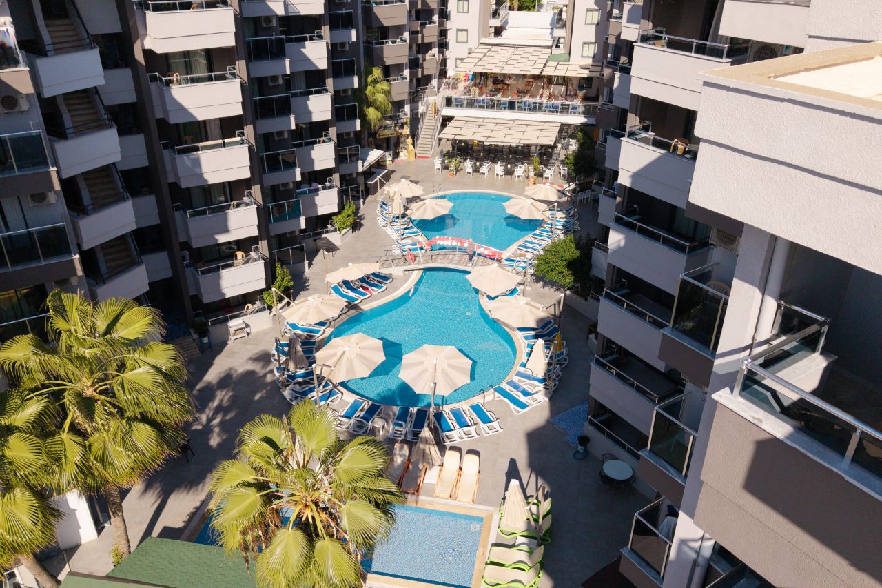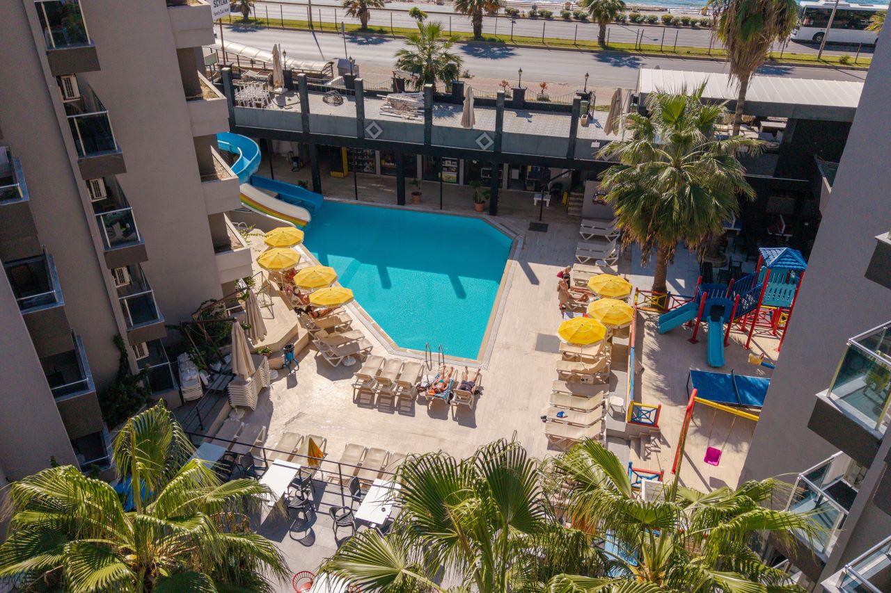 Hotell asub Alanya kuurorti Mahmutlar linnaosas, Vahemere rannikul. Pakume mugavaid tube, mis on varustatud kõigi vajalike mugavustega meeldivaks peatumiseks. Kohapeal on pearestoran ja baarid, kus pakutakse erinevaid roogasid ja jooke. Külastajatele on avatud välibasseinid, veeslaidid ja privaatne rand. Samuti on saadaval jõusaal, lasteklubi koos mänguväljaku ja spaateenustega nagu hamam, saun, jacuzzi ja massaaž. Aktiivse puhkuse armastajatele pakub hotell animatsiooniprogrammi ja sporditegevusi, sealhulgas lauatennis, rannavolle, aeroobika, piljard, noolemäng ja veespordialad. Sobib nii aktiivseteks kui ka lõõgastavateks perereisideks.