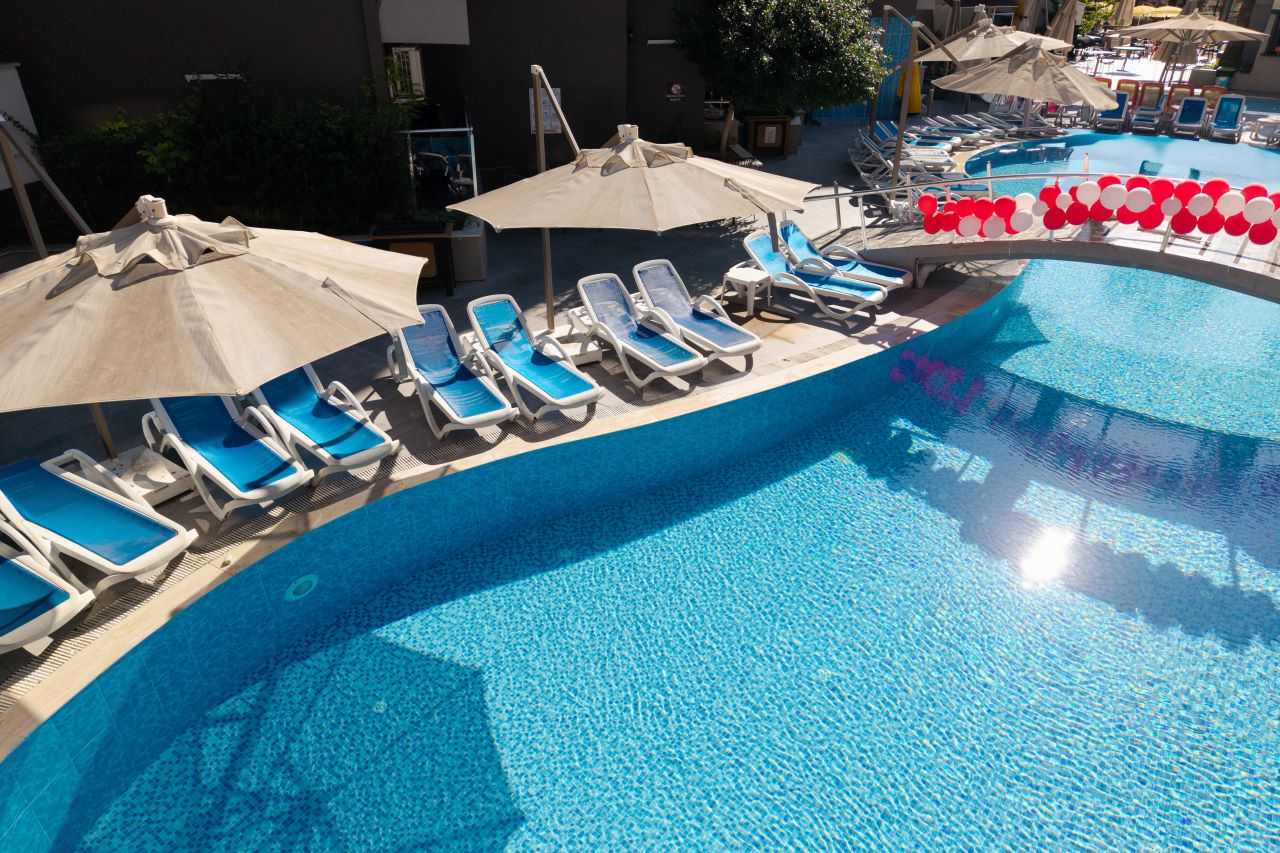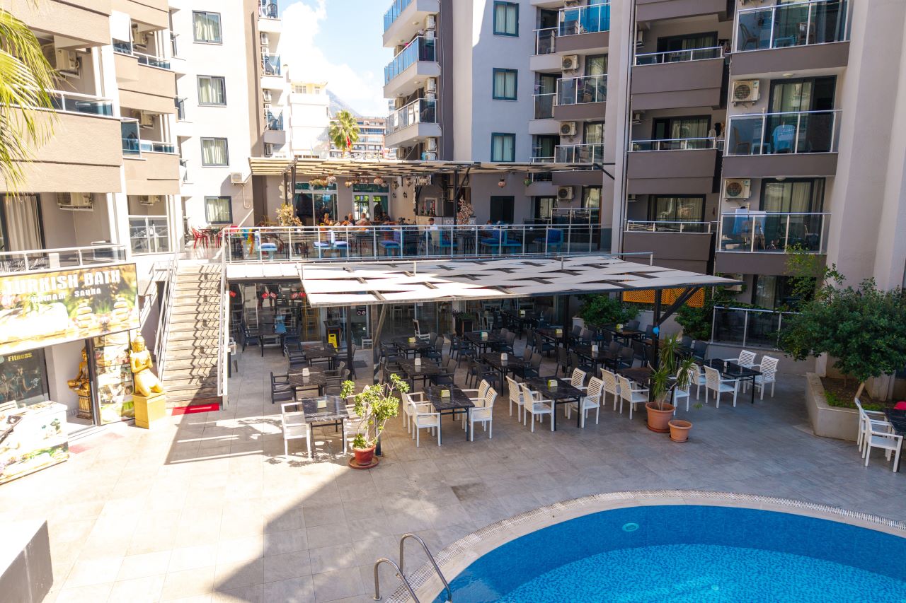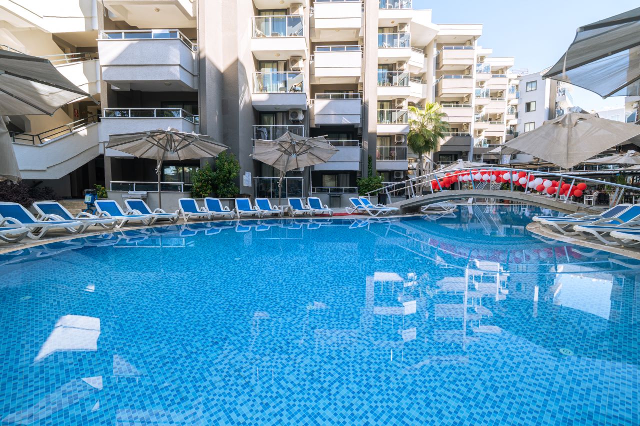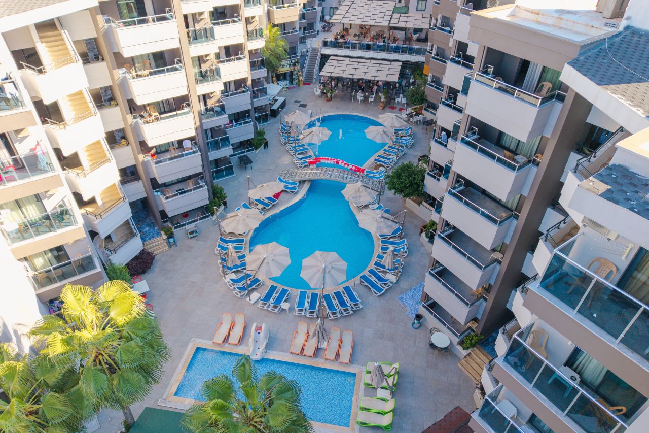 Hotell asub Alanya kuurorti Mahmutlar linnaosas, Vahemere rannikul. Pakume mugavaid tube, mis on varustatud kõigi vajalike mugavustega meeldivaks peatumiseks. Kohapeal on pearestoran ja baarid, kus pakutakse erinevaid roogasid ja jooke. Külastajatele on avatud välibasseinid, veeslaidid ja privaatne rand. Samuti on saadaval jõusaal, lasteklubi koos mänguväljaku ja spaateenustega nagu hamam, saun, jacuzzi ja massaaž. Aktiivse puhkuse armastajatele pakub hotell animatsiooniprogrammi ja sporditegevusi, sealhulgas lauatennis, rannavolle, aeroobika, piljard, noolemäng ja veespordialad. Sobib nii aktiivseteks kui ka lõõgastavateks perereisideks.